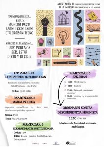 - 17:00 – Documental “Bularretik ehundutako aitortzak”: Documental que recoge los testimonios de 5 mujeres que han sido diagnosticadas de cáncer de mama.