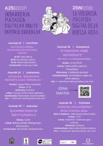 Indarkeria matxista zer den azalduko da, eta gaur egungo erronkak jorratuko dira, horien artean indarkeria ekonomikoa eta digitala. Horrekin batera honako hauek azalduko dira: mutil eta gizon gazteen jarrerak feminismoaren aurrean, eta sistema patriarkalak nola egokitzen duen bere burua.