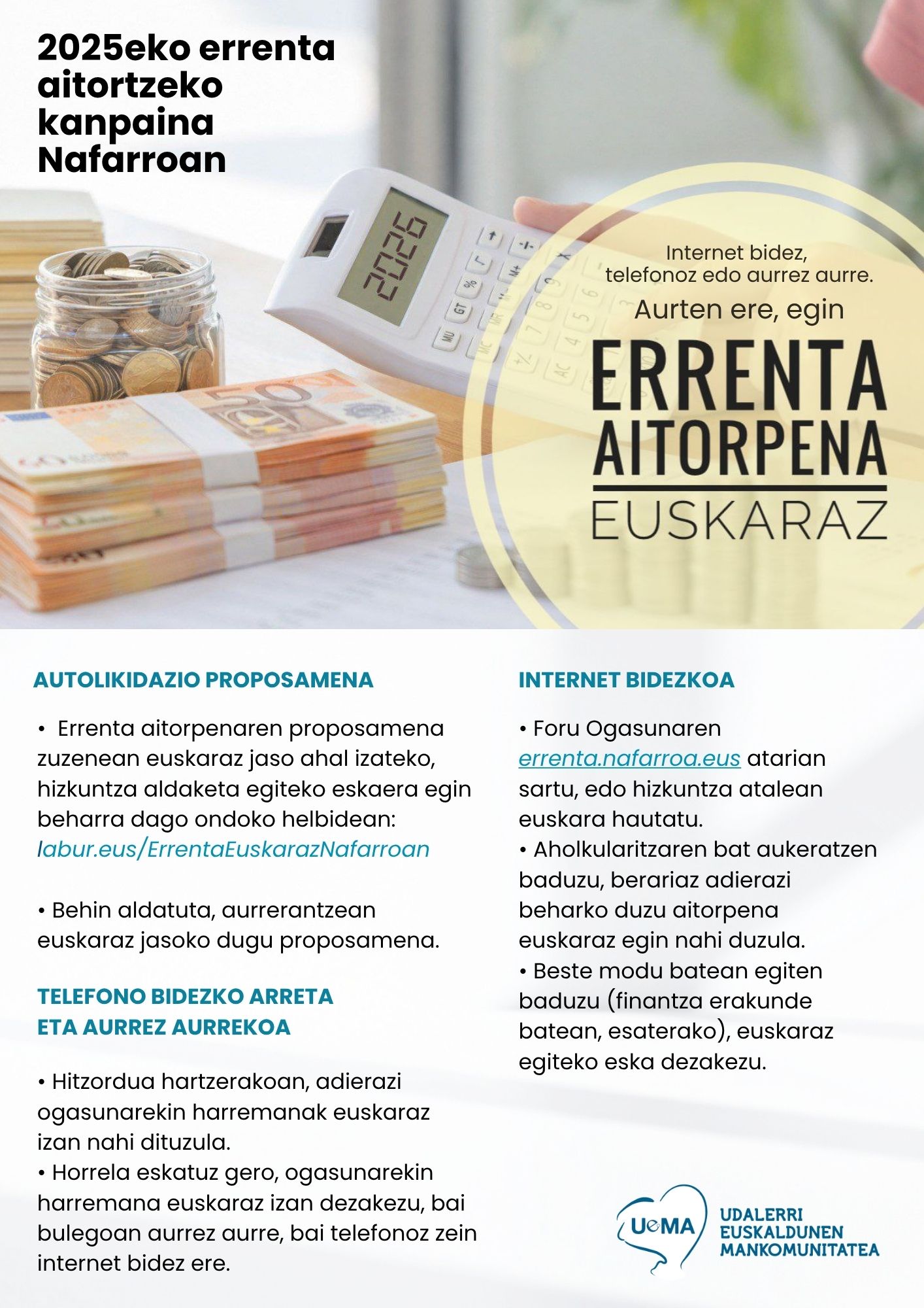 Autolikidazio proposamena: Errenta aitorpenaren proposamena zuzenean euskaraz hartu ahal izateko, hizkuntza aldaketa egiteko eskaera egin beharra dago ondoko helbidean: labur.eus/ErrentaEuskarazNafarroan. Behin aldatuta, hortik aitzinera euskaraz hartuko dugu proposamena, berriz tramite hori egin gabe.
